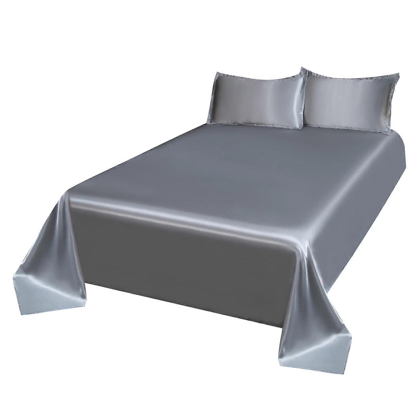 Clearance! Tahtuvzn Solid Color Bed Sheet Ice Silk Summer Wash Silk Friendly Bed Sheet with 2 Pillowcases Ice Silk Bed 3-Pack, Home Decor