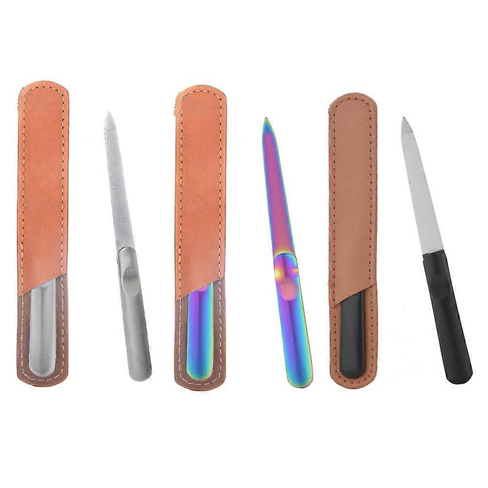 Nail File, Double Sided Stainless Steel Nail File with Non-Slip Handle and Leather Case, Double Sided Manicure Kit for Nail Care