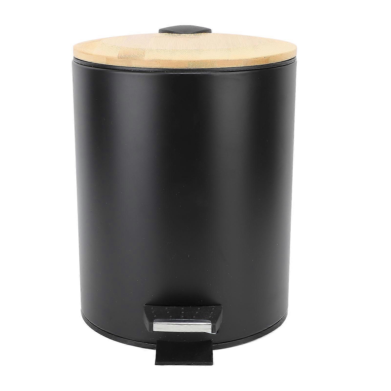 Large Soft Close Bamboo Lid Trash Can 5L Black with Foot Pedal