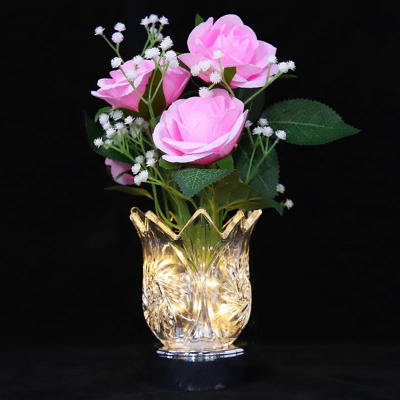 LED Rose Light Flower Vase Night Lamp for Bedroom Use Pink
