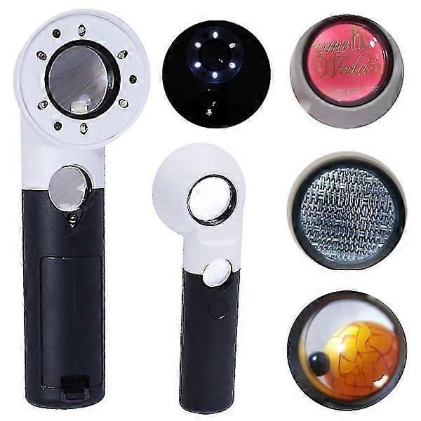 16x and 30x Magnification with LED Light Ideal for identification, collection, antique jewelry, diamond repair, and precision instrument inspection. Type: Handheld Magnifier Magnification: 16x (primary lens), 30x (secondary lens) Effective Diameter: 30mm (primary lens), 21mm (secondary lens) Material: ABS, Acrylic Optical Lens