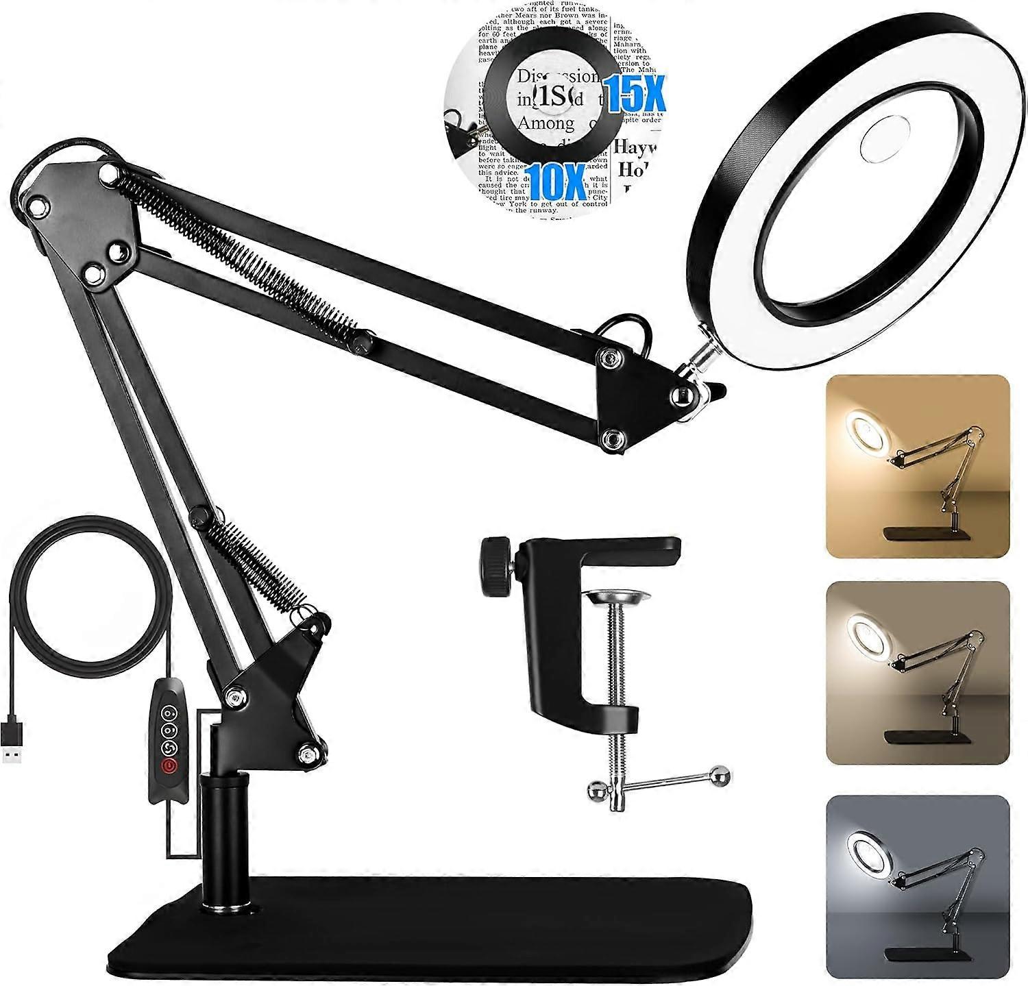 15X 10X Magnifying Glass With Light And Stand, 2 In 1 Magnifying Desk Lamp With Clamp & Base, Led L