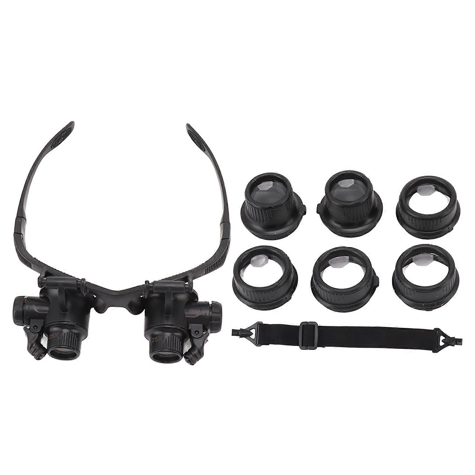Item Type: Head Magnifier Battery: 6 x LR1130, 300mAh Button Batteries (Included) Magnification: 10X 15X 20X 25X Light Source: White Light Light Mode: White Light Always On Control: Rotary Switch Material: Plastic, Metal, Acrylic Optical Lens Weight: 149g / 5.3oz (Approx.)