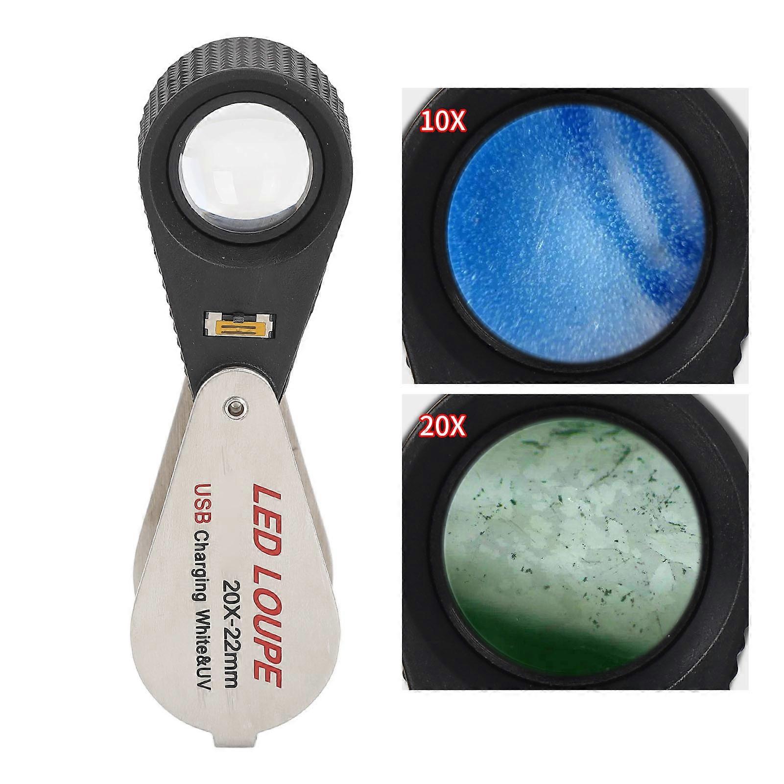 20X Folding Magnifying Glass Portable Rechargeable Pocket Magnifier with LED Lights for Coin Fabrics Insects