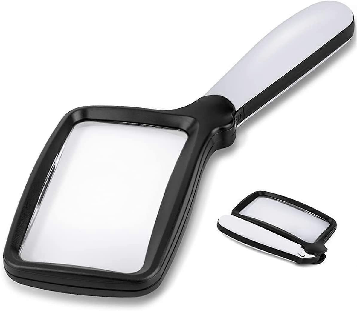 Folding Handheld Magnifying Glass with Light, 3X Large Rectangle Reading Magnifier with Dimmable LED for Seniors with Macular Degeneration