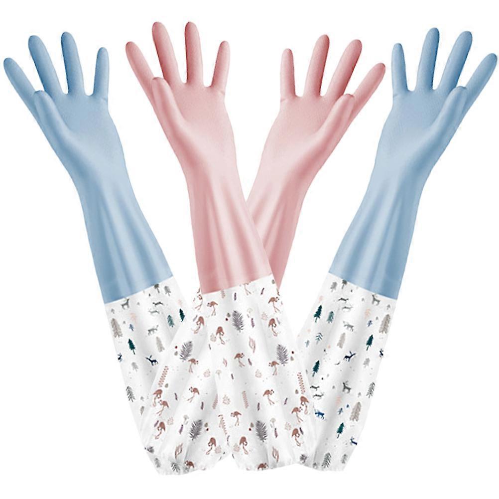 Gardening Gloves Silk Fabric Long Cuff Winter Use Protective Cleaning 2Pairs
