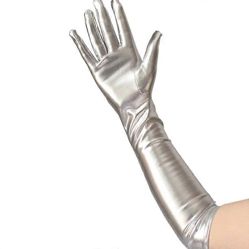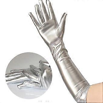 Gold Silver Wet Look Fake Leather Metallic Gloves Evening Party Performance Mittens Women Sexy Elbow Length Long Latex Gloves