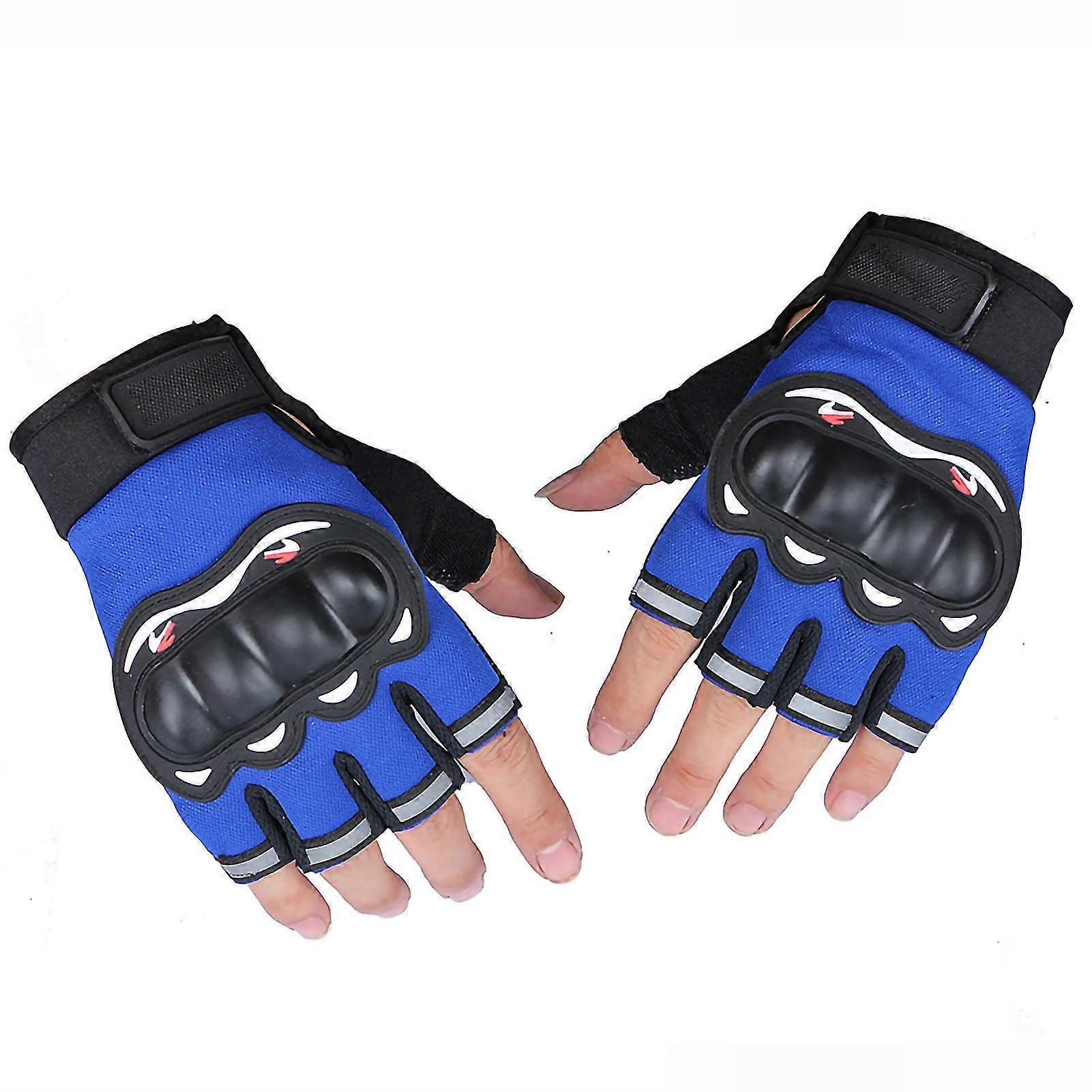 Motorcycle Gloves - Blue Half Finger with Nonslip Knuckle Protection compatible with Riding, Road Racing, and Cycling