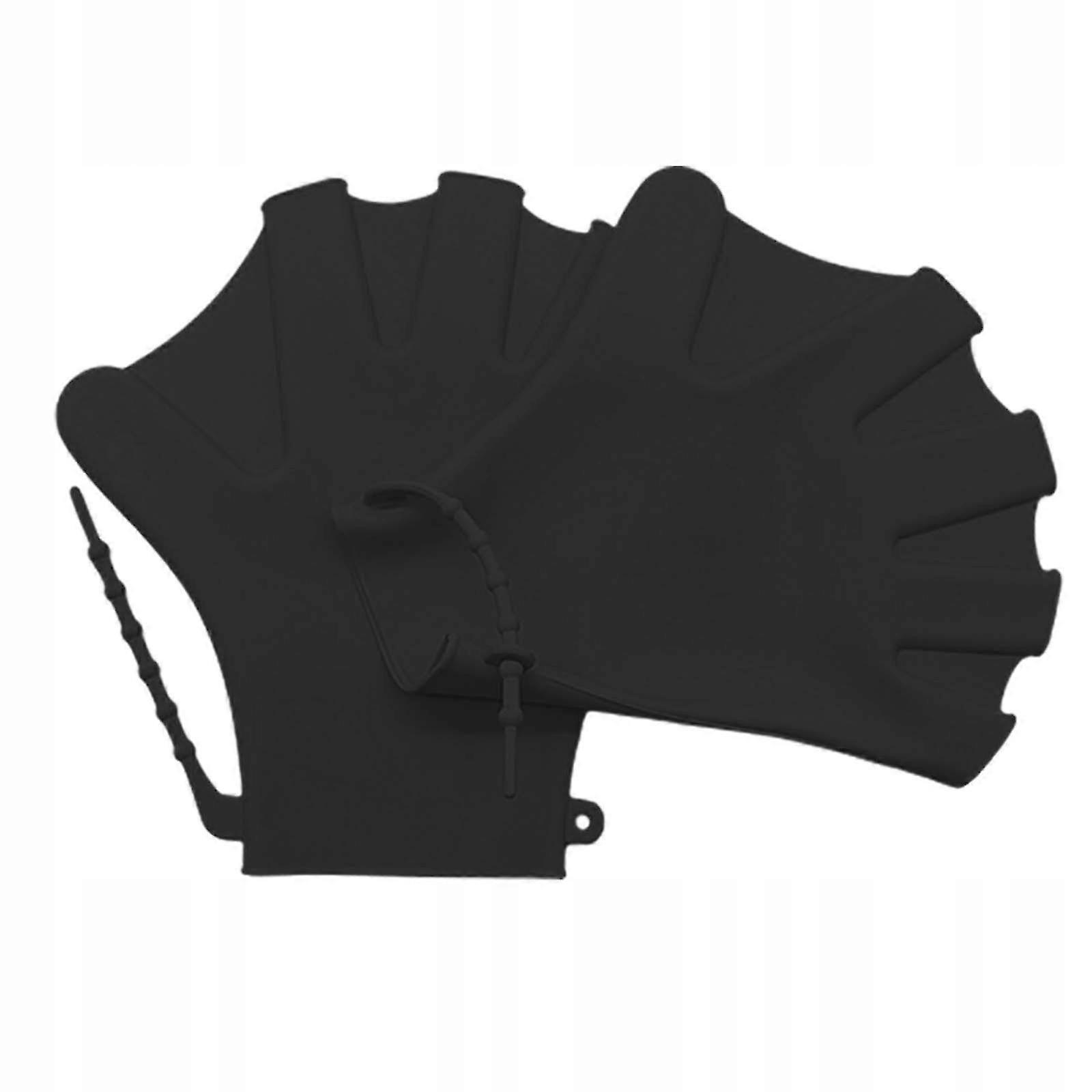 Webbed Swimming Gloves Adjustable Aquatic Fitness With Wrist Strap Black