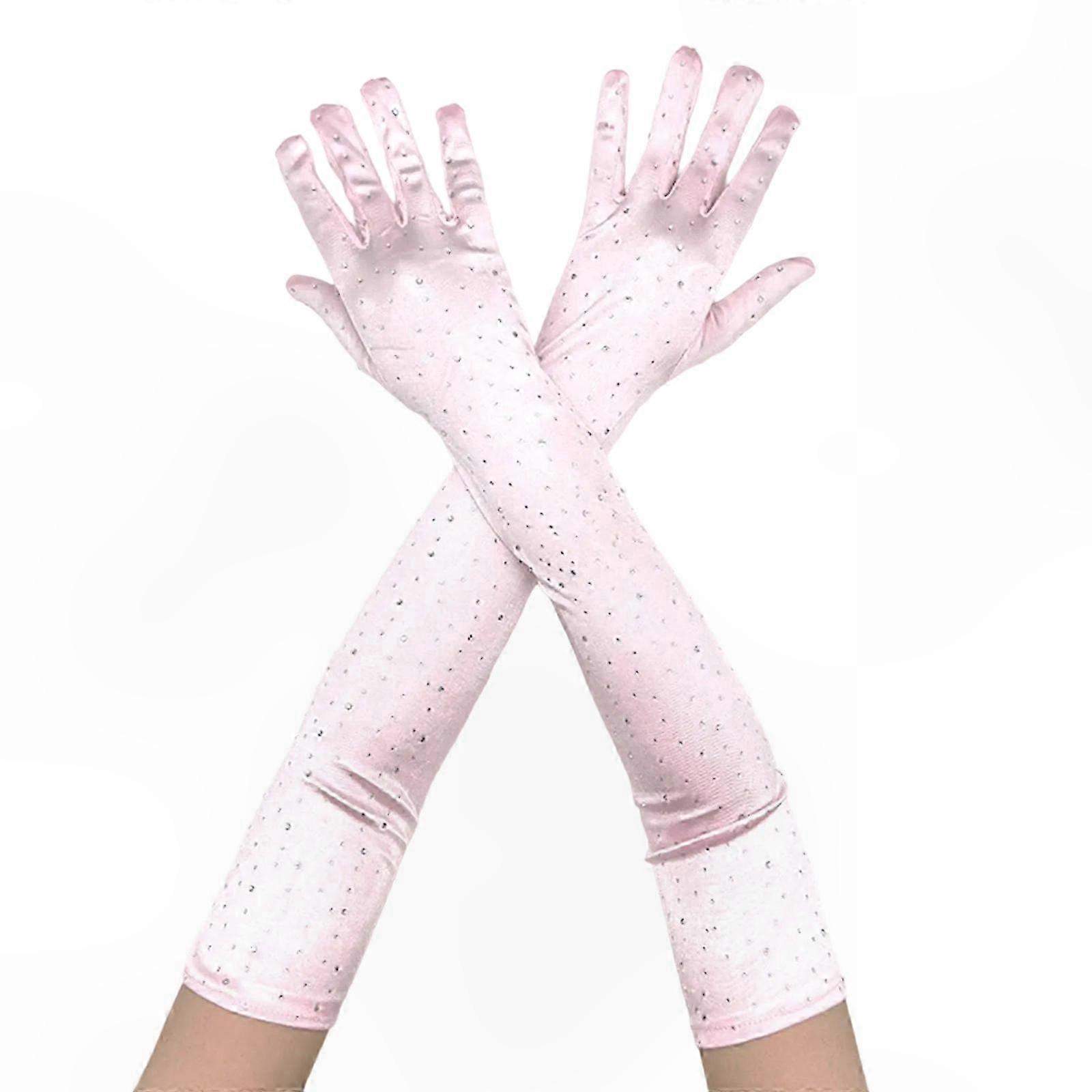 Long Evening Gloves with Rhinestones for Women Wedding and Special Occasions