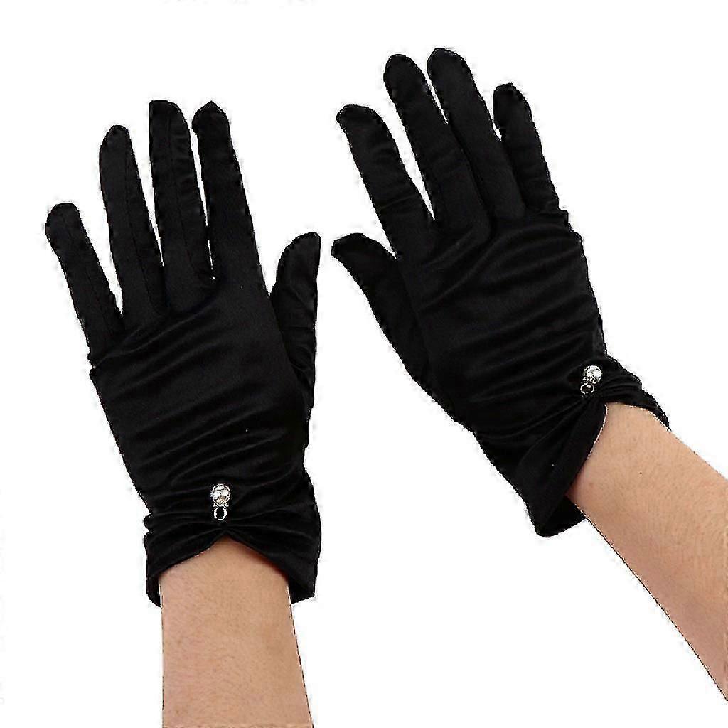 Short Satin Bridal Gloves Women Vinatge Stretchy Gloves Wrist Length With Pearl