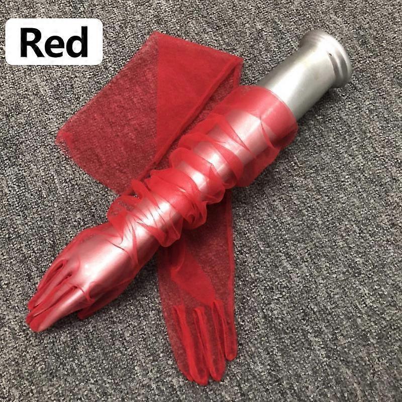 Women's Tulle Gloves Lace Full Finger Elbow Long Dress Gloves Sheer Ultra Thin Transparent