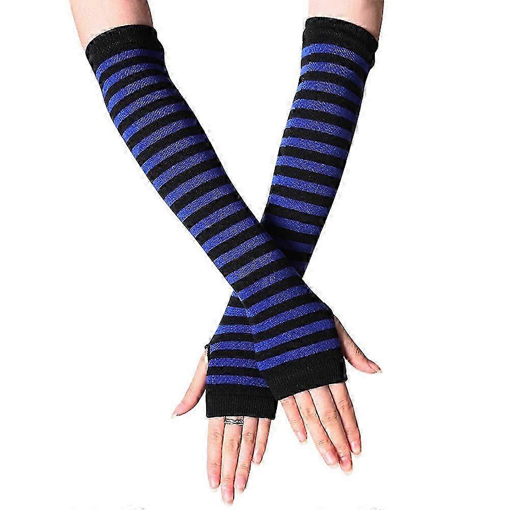 Womens Wrist Arm Warmer Mittens Long Hand Fingerless Striped Gloves