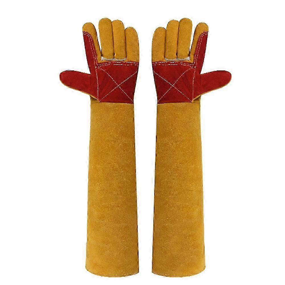 Reinforced wing thumb & Kevlar thread design for maximum flexibility. It means taking items and operating easily, reducing your risk of burns or scratches. Welders gloves work great for wood-burning stoves. The 23.6-inch extra-long gloves protect your fingers and forearm from animal bites, Cat scratches, Parrot grabbing, Eagle grabbing, Snake bites, etc. Designed for veterinarians, animal control staff, kennel workers, zoo workers, pet shop employees, pet owners, bird handlers, reptile handlers, and so on. Whether men or women use it, it"s kind to people and our environment. Features: All-Around Protector: These animal handling gloves extra a reinforced palm patch for grip and wear resistance. The long 23.62-inch gloves protect the wrist away from animal bites, scratches, or gardening work thorn hurt. High-Density Stitching: Reinforced finger palms & backs and high-strength Kevlar sewing, easy to process and shape, provide an excellent bite-proof function from small animals for your hands and forearm. Premium Structure: Made of thickened PU leather, more enduring and strong. Its breathable lining offers softness, comfort, and extra safety. Formed a compact solid covering. Offer your hands and forearms well guard. Excellent Bite-Proof: Effectively bypass bite or scratch from cats, dogs, and birds like parrots, squirrels, hamsters, snakes, etc. It could be used while training and playing with large birds, hawks, kittens, and puppies. Widely Used: These bite-proof gloves are used for veterinarians, animal handling staff, groomers, kennel workers, zoo workers, pet shop employees, breeders/handlers, pet owners, bird handlers, and reptile handlers. Specifications: Color: Gray and Yellow, Yellow (Optional) Material: PU Leather Item Length: 60cm/23.62in Package Size: 30 * 15 * 3cm/11.81 * 5.91 * 1.18in Package Weight: 500g/17.64oz Packing List: 1 Pair Of Gloves Note: Due to the light and screen setting difference, the item's color may be slightly different from the pictures. Please allow slight dimension difference due to different manual measurement.