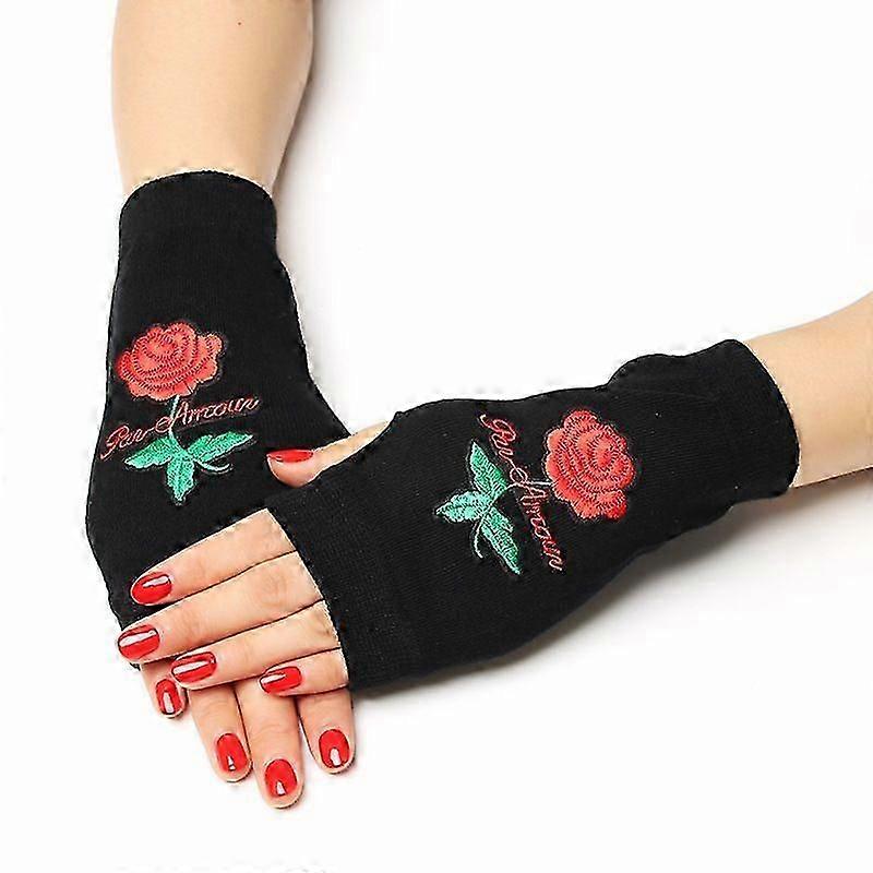 Rhinestone Fingerless Gloves Women Black Snowflake Winter Glove Reindeer
