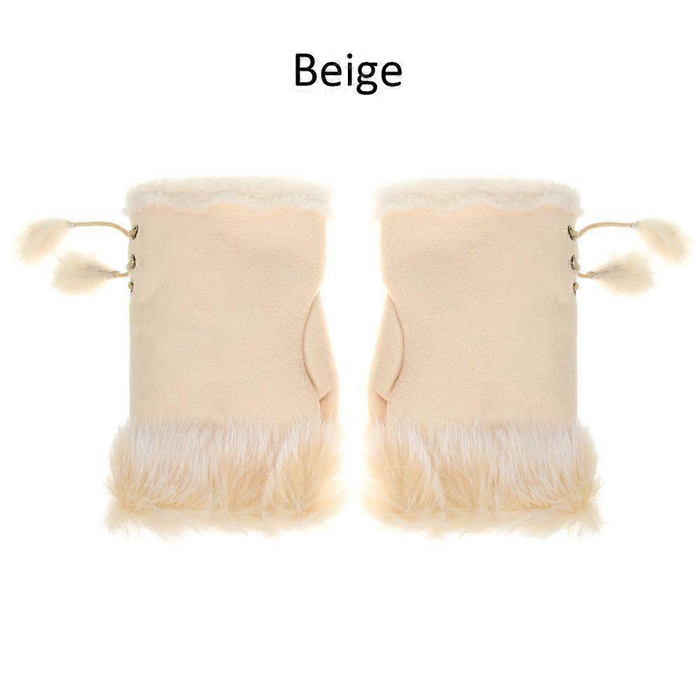 Fashion Soft Elastic Fingerless Warm Mittens Thicken Warm Faux Rabbit Hair Gloves