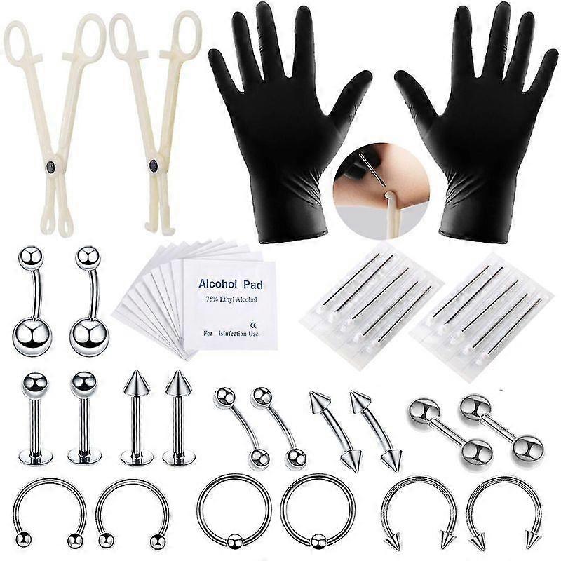 Luxora 42pcs Body Piercing Kit Lip Studs Eyebrows Stud Ear Studs Navel Ring Body Piercing Needles Piercing Steel Piercing