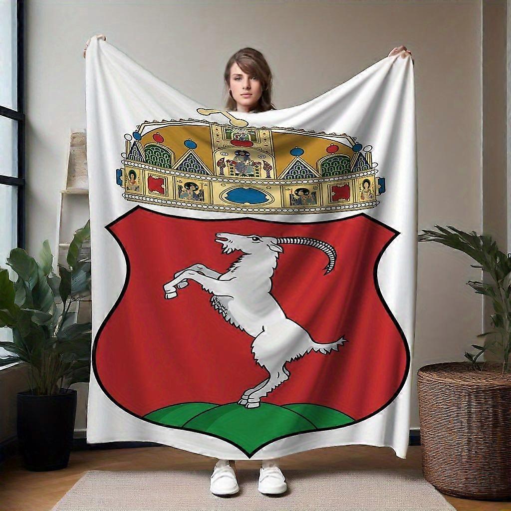 Luxurious Red Shield with White Goat & Crown Flannel Blanket - Soft Plush All-Season Throw in Red/White/ - Elegant Gothi-QAZXC381