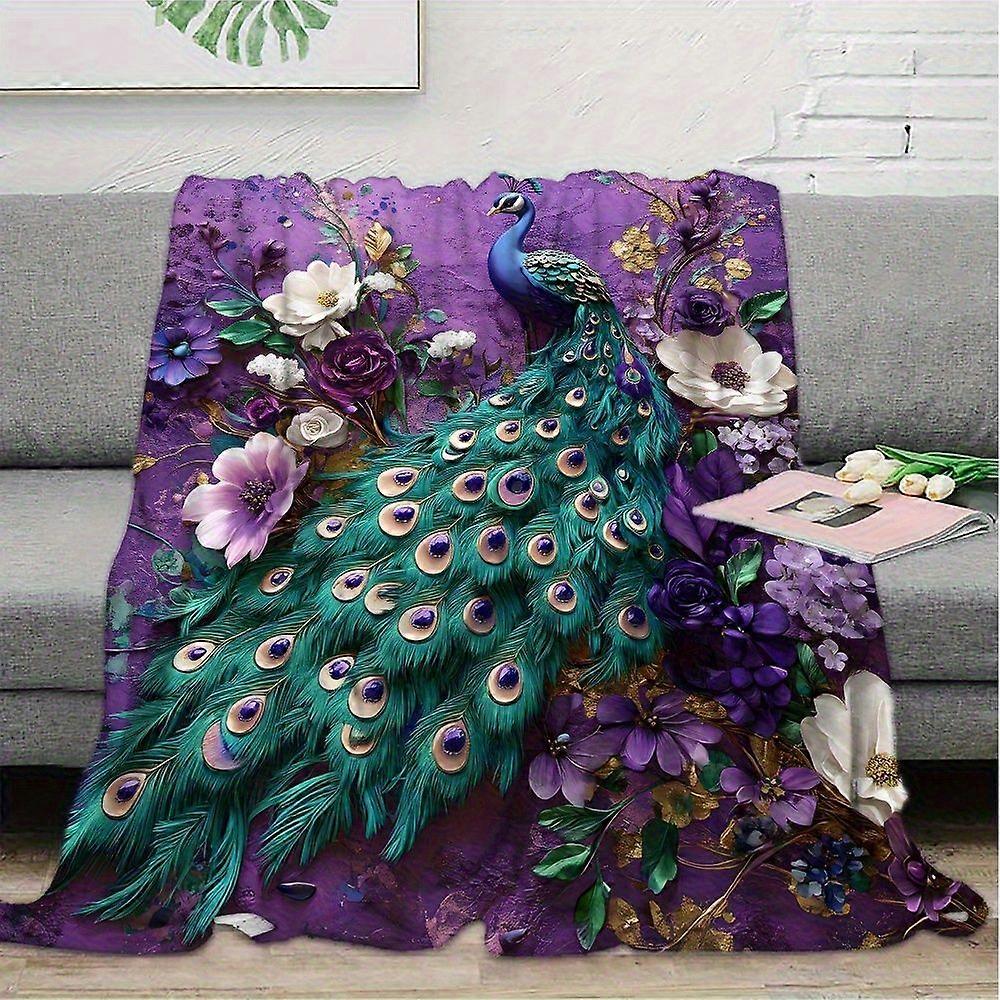 Luxury Peacock Pattern Plush Throw Blanket, Soft Comfortable Warm Flannel, Ideal for Napping and Travel, Perfect Gift fo-azxcv252