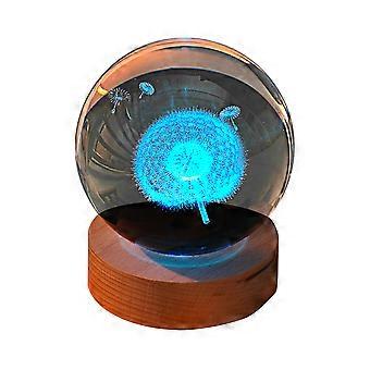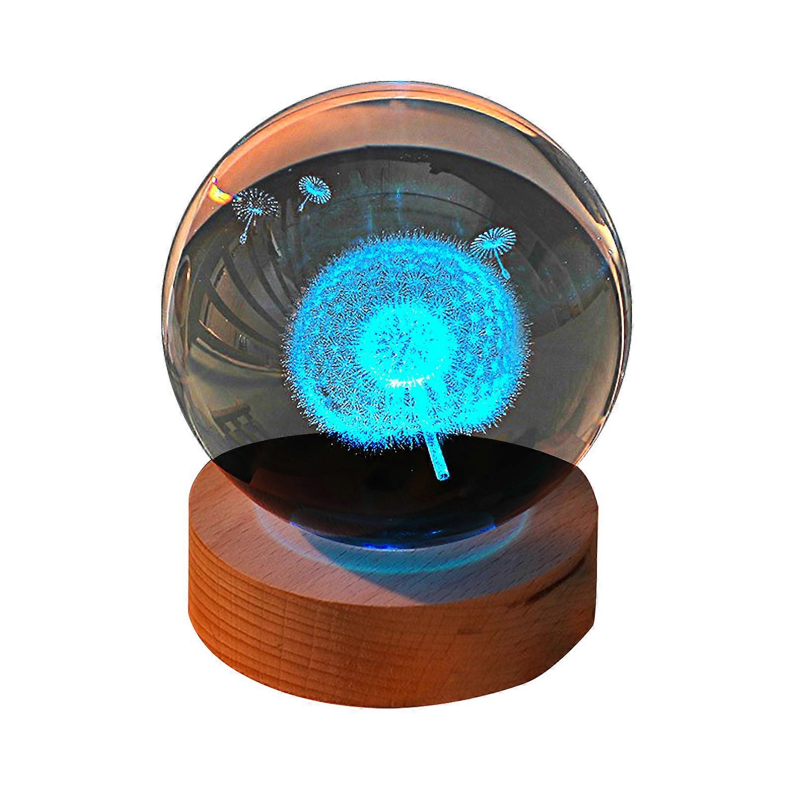 3D Crystal Ball Light Inner Carved Luminous Colorful Gradient Crystal Ball Night Light with Wooden Base for Bedroom Desktop Decoration