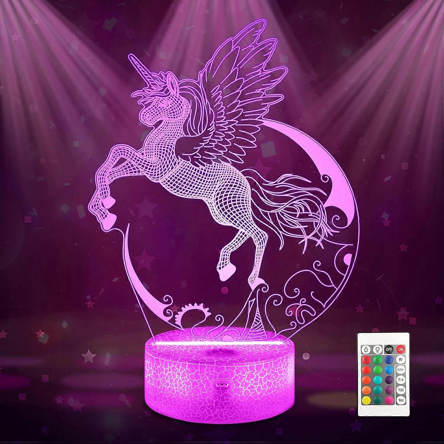 Unicorn Night Light for Kids, Unicorn 3D Illusion Lamp 16 Colors Change with Remote & Timer Unicorn Bedside Light as Birthday Gifts f Gift for Kids