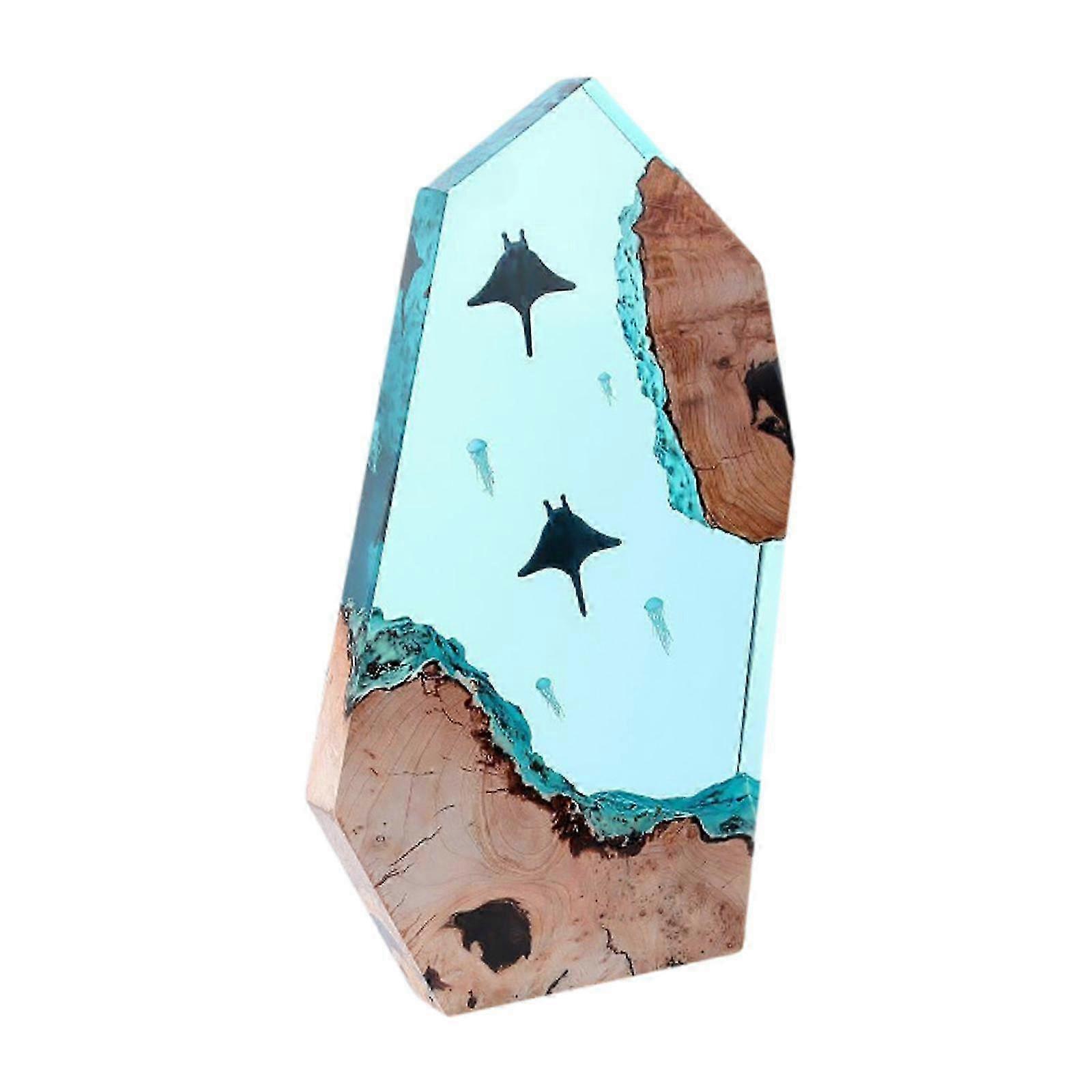 LED Night Light Wood Base Decorative Ocean Diving Light for Bathroom Bedroom 8inch