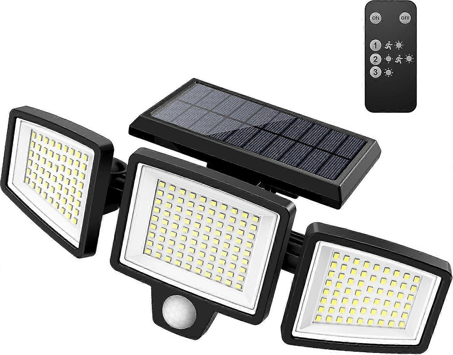 SDIGV Solar Security Lights with 2500LM 210 LEDs 3-Head Motion Sensors Remote Control IP65 Waterproof and 270-Degree Wide Angle Floodlighting