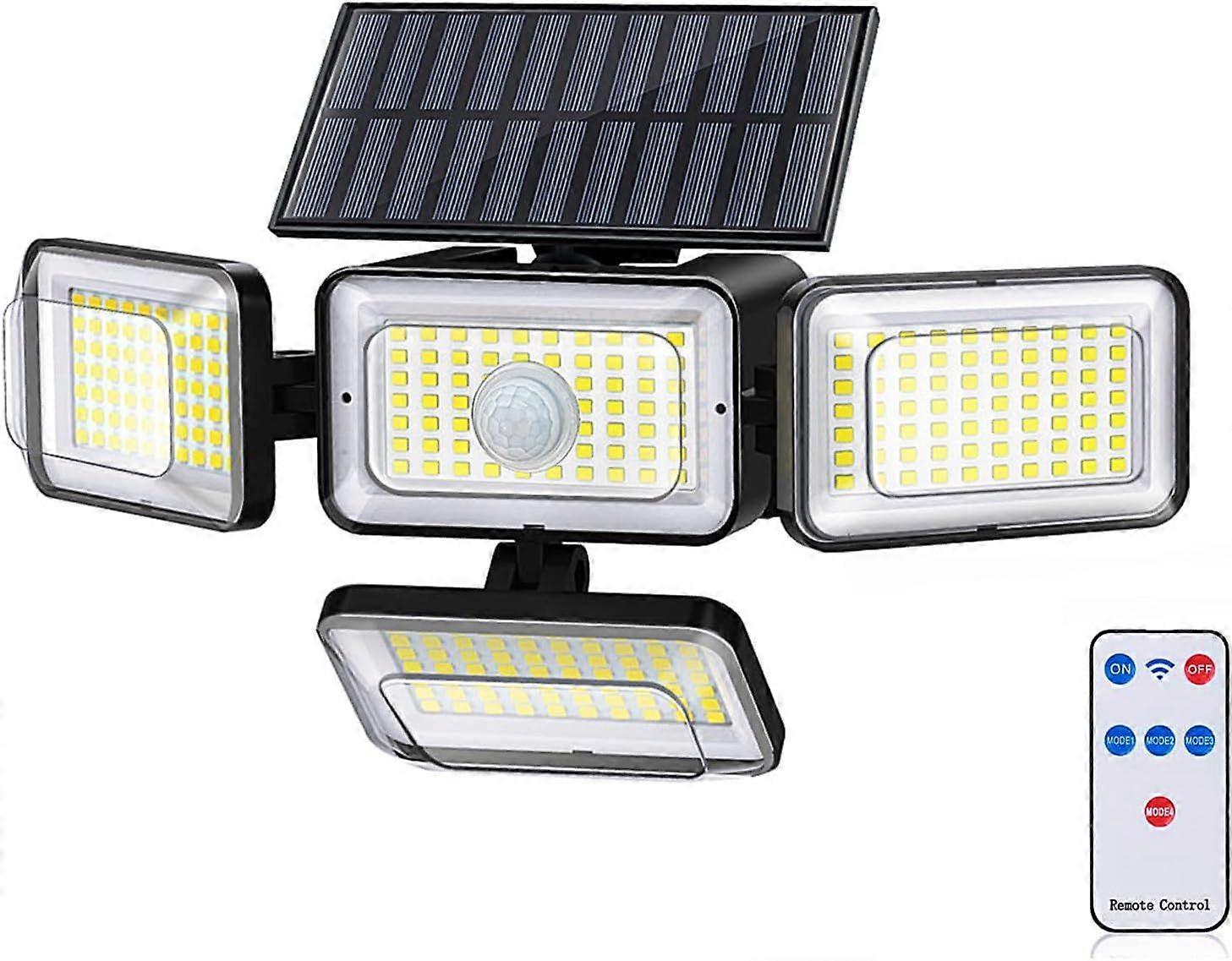 SCSYV Solar Lights for Outside, IP65 Waterproof Solar Outdoor Security Lights with 2500LM, 4Heads Motion Sensor Outdoor Lights with Remote, 270 Wide A