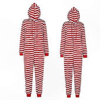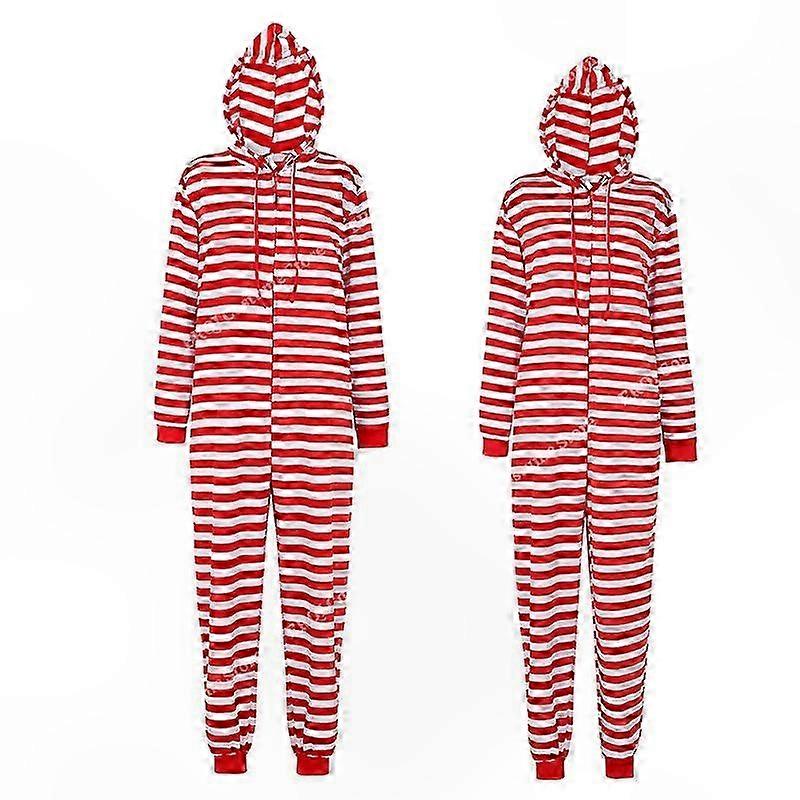 Adult Red and White Striped Zip-Up Hooded Jumpsuit for Plus Size Christmas Sleepwear