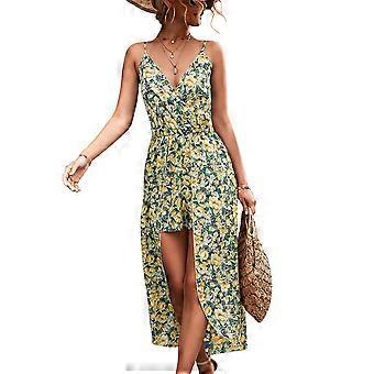 Macacão com Decote em V com Alça de Espaguete Estampa Floral Cintura Elástica Irregular Painel Bainha Mulheres Macacão Macacão de Verão Amarelo L