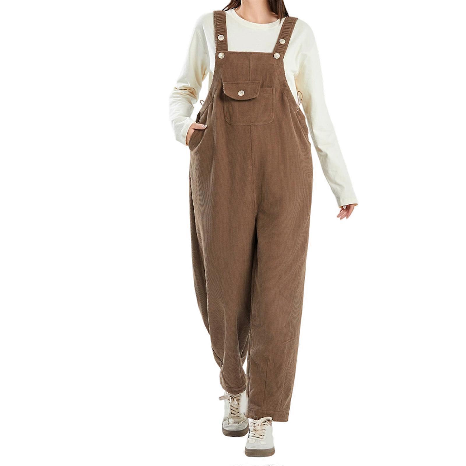 Winter Ready Maternity Overalls With Elastic Waistband Fleece Lining Reinforced Suspender Clips For Pregnant Women Light coffee XL