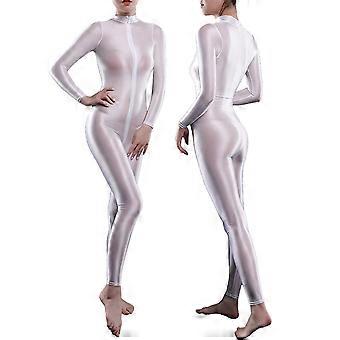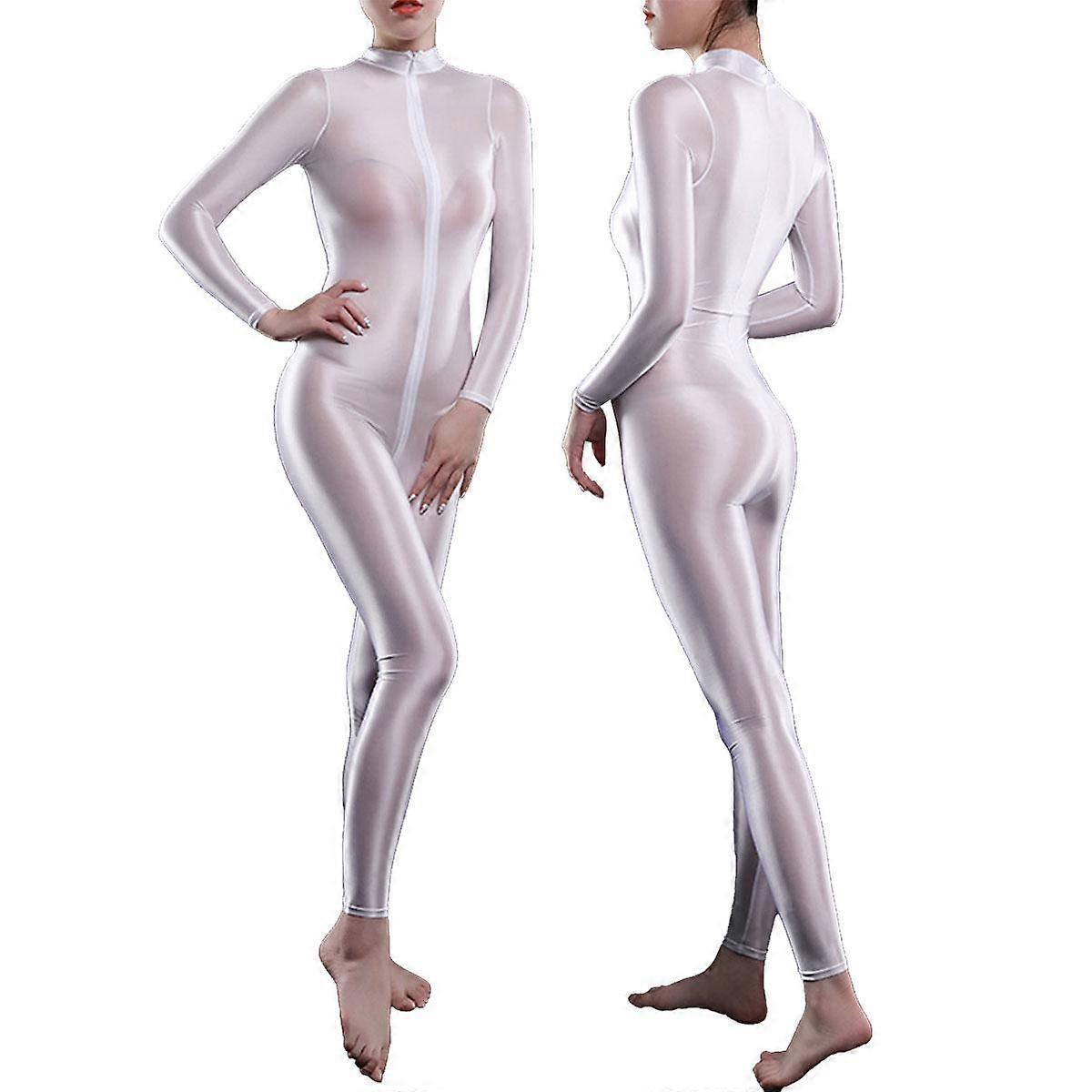 Women's One-Piece Shiny Long Sleeves Double Zipper Smooth Leotard Bodysuit Jumpsuit Catsuit