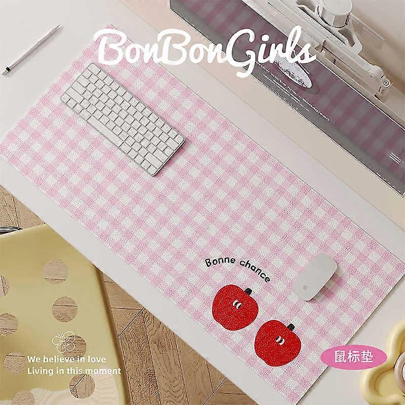 Macaron Check Pattern Girl Large Mouse Pad Leather Waterproof and Oilproof Computer Office Study Table Mat Gaming Keyboard Pad