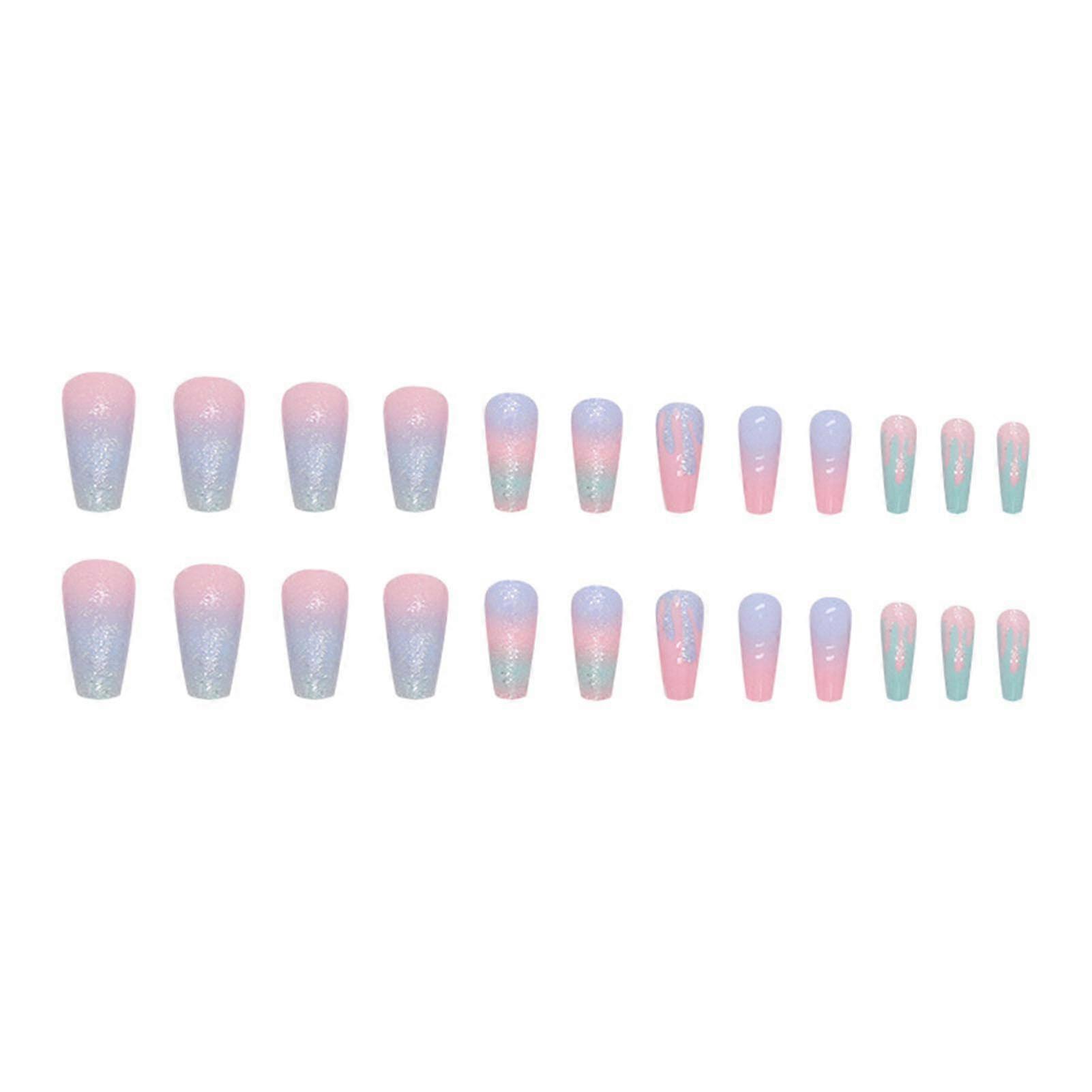 Macaron Color False Nail With Glitter Full Coverage Medium-length False Nail For Hand Decoration Nail Art