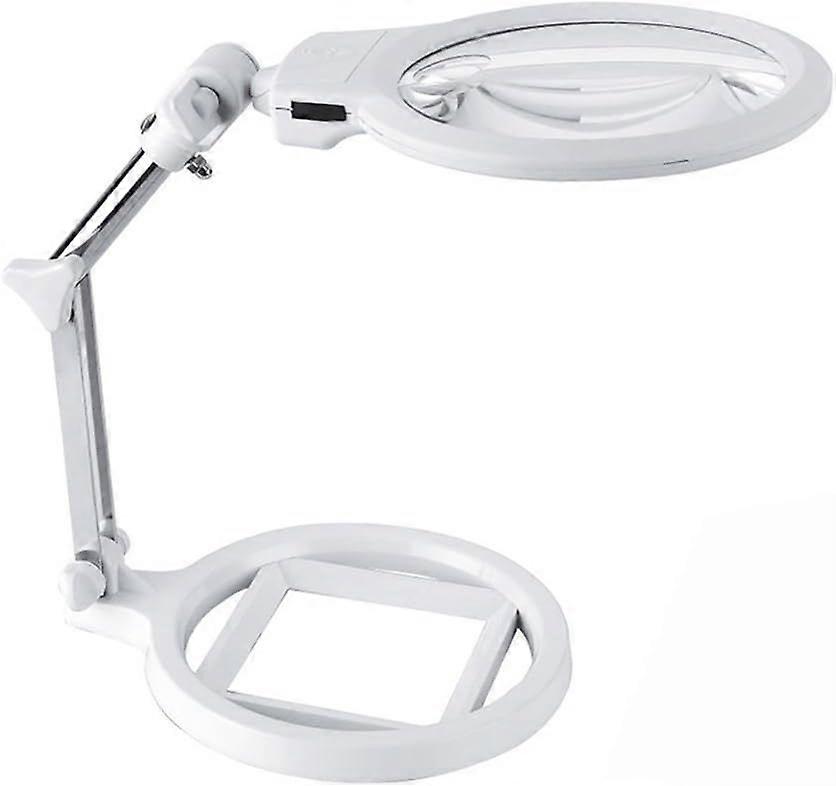 Magnifying Lamp, Foldable Desktop/Tabletop Magnifier with Stand and 2 LEDs, Portable Flexible Magnifier with 2.5X to 5X Magnification Lens for Reading
