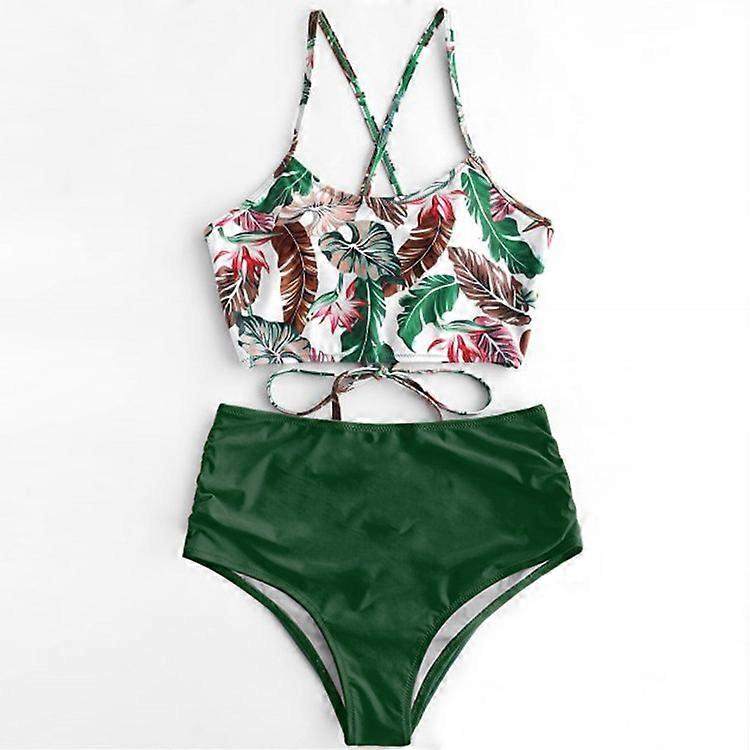 Padded bra, cordless, solid color swimsuit. This two piece bikini features a solid tank style top with a cute knot front to enhance the solid top and tropical leaf print. The two-piece bikini set is perfect for summer, swimwear, beach wear, beach party, pool party, spa and vacation. Material: polyester, spandex - elastic material, feels good on the skin and is comfortable to wear. Due to manual measurement, please allow 1-3cm distance. Size: (cm) S: Bust: 79-82, Wasit: 62-66, Hip: 84-88 M: Bust: 83-86, Wasit: 67-70, Hip: 88-92 L: Bust: 87-90, Wasit: 71-74, Hip: 92-96 XL: Bust: 91-94, Wasit: 75-78, Hip: 96-100