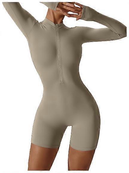 Women's Long Sleeve With zipper Ribbed Knit One Piece Shorts