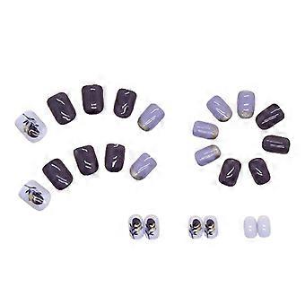 French Style Purple Flower Printed Short Fake Manicure Lightweight And Easy To Stick Fake Nail For Daily And Parties Wearing Bonus: Get a free profes