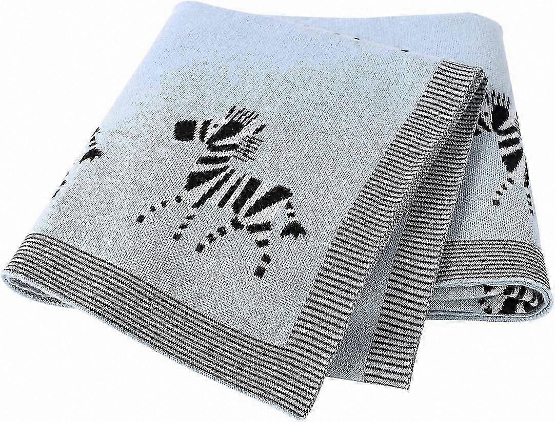 Soft Knitted Baby Blanket, 100% Cotton Crib Cover with Adorable Zebra Print, 80 x 100cm, Blue for Newborns