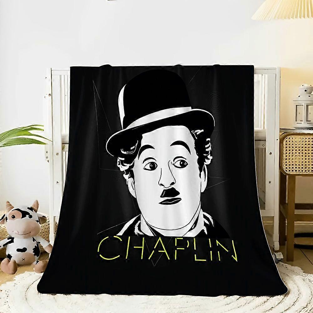 1pc Charlie Chaplin Poster Design Flannel Blanket - Black & White Iconic Film Star Throw with Bold CHAPLIN Lettering, Al-AZXRT213