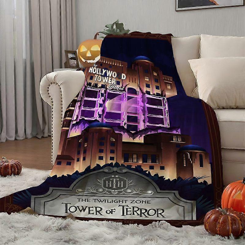 Scared Tower Retro Horror Theme Rides Pattern Printed Flannel Blanket, Perfect Gift for Family Parties with Exquisite De-QAZXC321