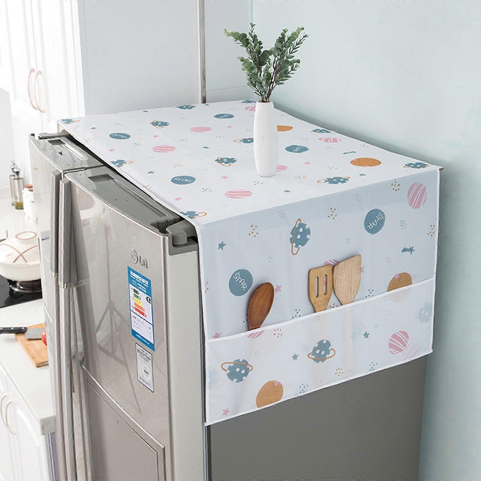 Washing Machine Cover-proof And Oil-proof Dryer Top Cloth With Side Storage Bag Cotton Linen Kitchen Refrigerator Appliance Protection Cover