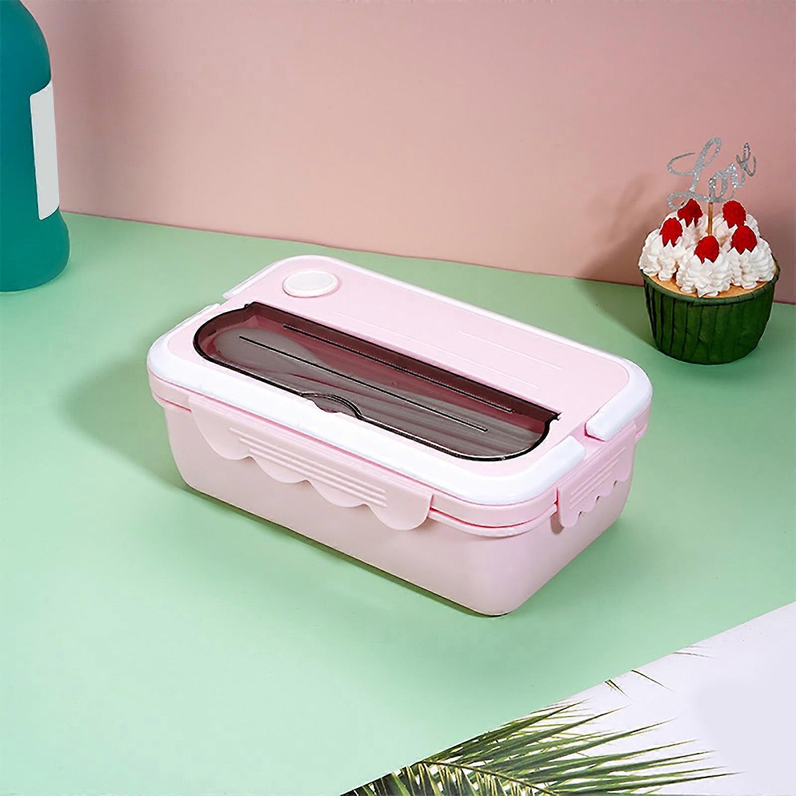 Avtoify Divided Lunch Box, Microwave Safe, Portable Meal Container for School, Office, Student, Worker, Pink - Compatible with Microwave Ovens