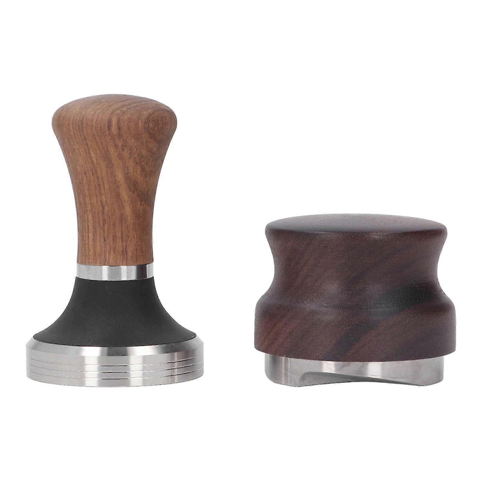 Powder Press Hammer and Distributor Set Stainless Steel Coffee Tamper with Wooden Handle for Cafe