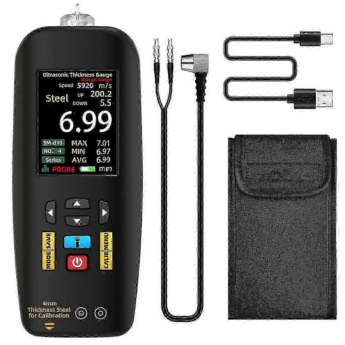 Ultrasonic Thickness Gauge with Color Display - 1-300 mm Range Meter with Probe for Measuring Metal, Steel, Plastic, and PVC