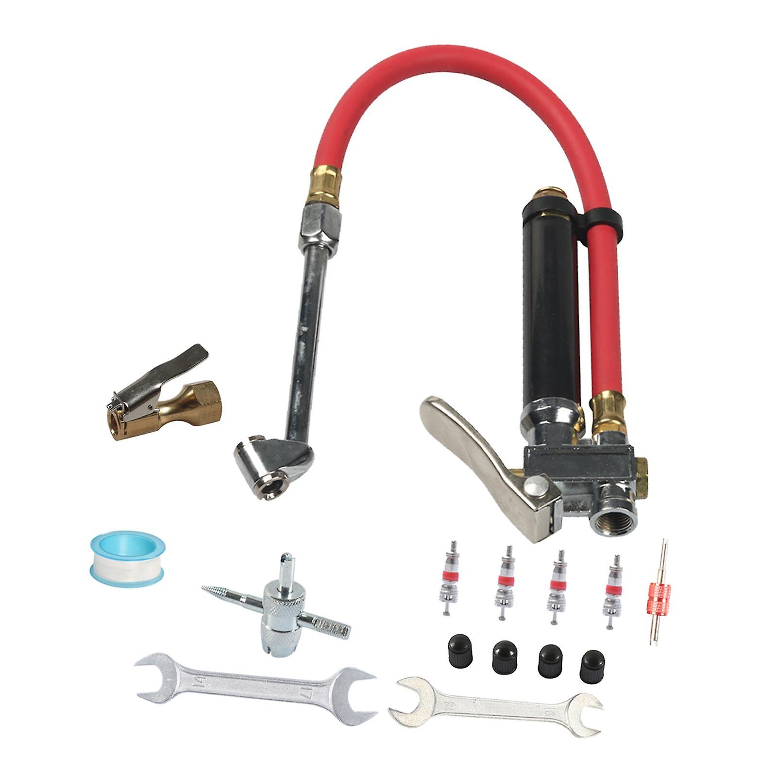 Tire Pressure Gauge 120PSI with Inflator Automotive Cars Bikes Tire Inflator Red with Valve Cores