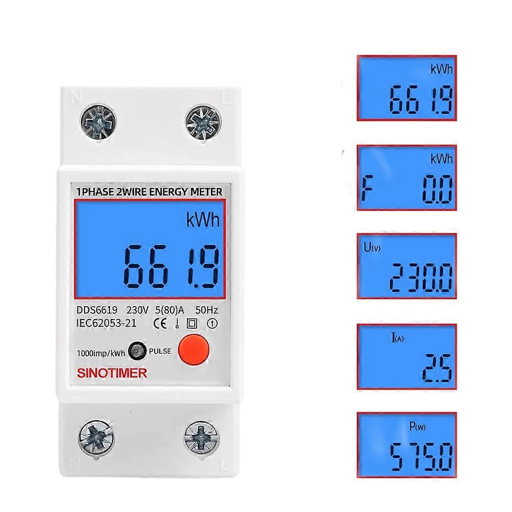 Display V, A, kW, Hz, power factor, press the red key to change the display. The meter mounts easily on the DIN rail: mounting requirements include around the meter, electrical cabinet, sub-distribution with 35mm DIN mounting rail. Packing: 1 electrical energy meter< /p> Size: 7.8x3.5x6.5cm Type: Single-phase electric energy meter Base current: 5 (A) Precision class: class 1 Reference voltage: 230 (V)< /p> Current rate: 1,000 imp/kwh Display mode: digital display Frequency: 50Hz< /p> Maximum current: 80 (A) Note: Due to the different images displayed, the actual color shall prevail. Dimensions are measured by handmade, there may be errors (1-2 cm).