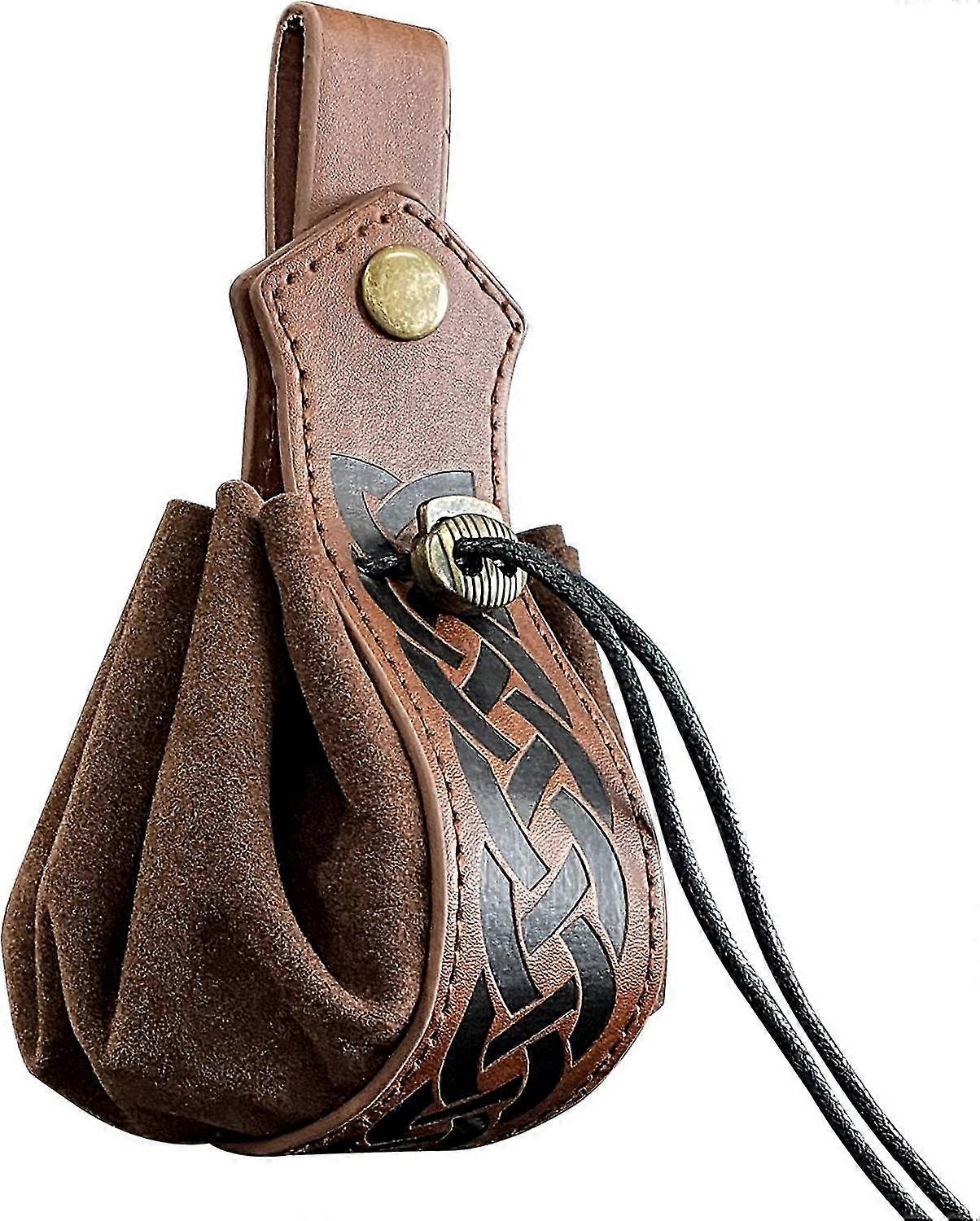 Medieval Faux Leather Drawstring Pouch Retro Nordic Portable Coin Purse Vintage Belt Pouch Dice Bag For Larp Ren Faire (brown A)