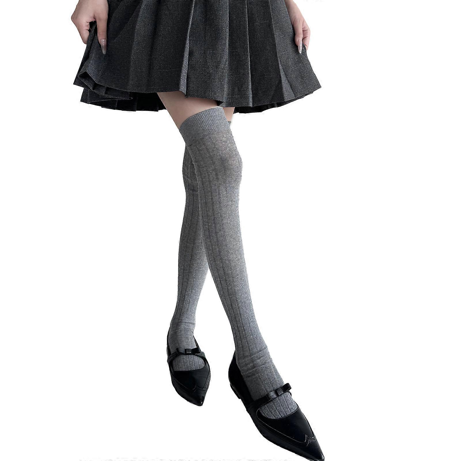 Womens Teens Ribbed Thigh High Boot Socks Color Block Patchwork Over Knee Long Stockings Student Elegant High Tube Socks soot