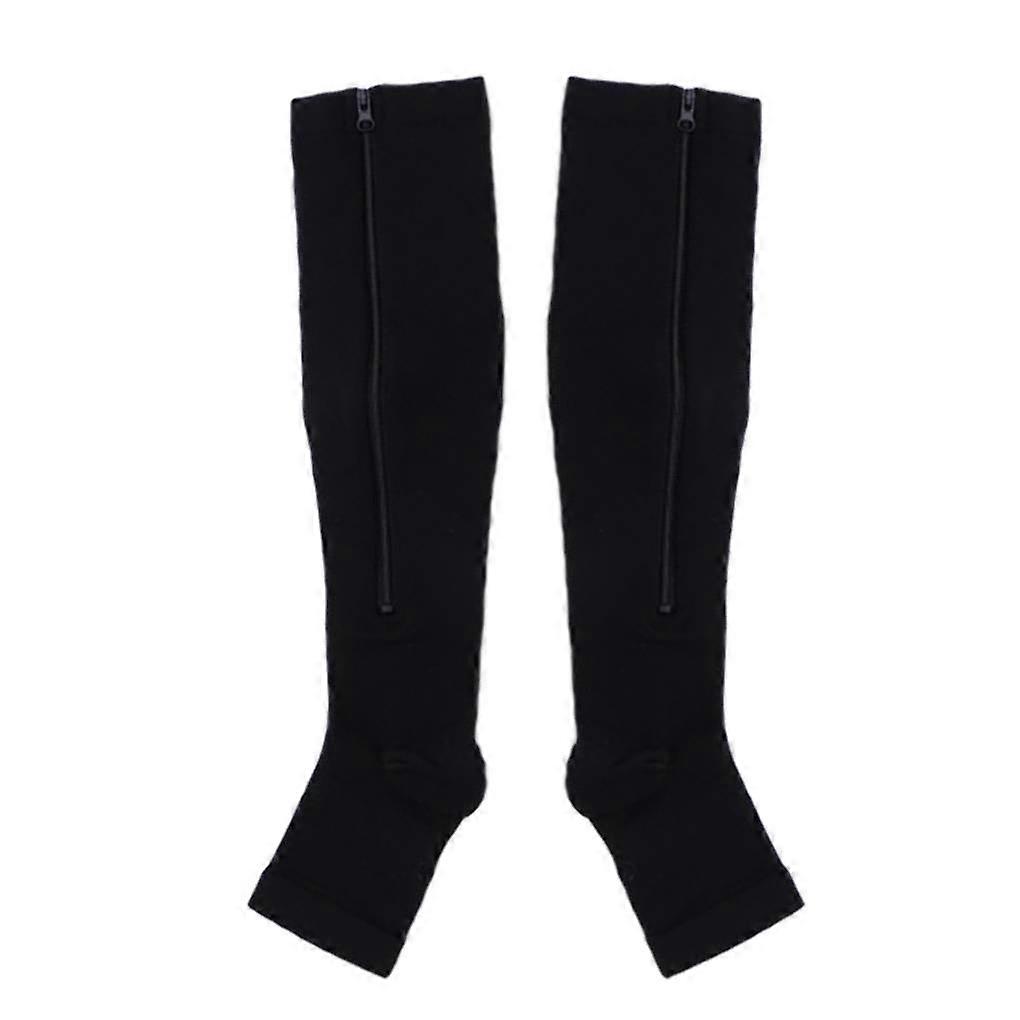 Fashion Nylon Zipper Compression Sock Leg Knee Support Open Toe Preventing Varicose Veins Stretch Socks